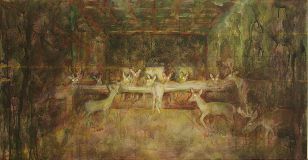 Re – naissance Wiedergeburt, ein Neuanfang, eine Chance Alte Bilder mit neuer Bedeutung Aus dem Blickwinkel des Menschen wird auf eine Welt ohne Menschen geschaut. Die Bilder meiner „Re-naissace“-arbeiten sind bittersüß und gleichzeitig auch amüsant, weil die Tiere in solch hochemotionalen, religiös konnotierten, klassischen Situationen zu sehen sind. Nicht der Mensch ist die Krone der Schöpfung, die Natur ist die „Krone der Schöpfung“ und wir sind nur ein Teil davon. Wir teilen uns die Welt, aber es geht ungerecht zu - gegenüber anderen Menschen, gegenüber Tieren, gegenüber Pflanzen, Wasser und Luft. Der Mensch ist schlau und doch unzulänglich. Unser Materialismus, unsere Gier sind eine „Sünde“ gegenüber der Natur. Man muss nicht religiös sein, um das zu verstehen. Ist die Krake schlauer als der Mensch? Wie wäre es mit einem neuen Adam? Eden als physischer, idealer Garten kommt letztlich auch ohne den Menschen aus. Der Mensch muss aufpassen, nicht zu gierig, zu arrogant zu sein. Sehnsuchtsort Paradies, wird der Mensch sich noch entwickeln, oder hat er sich schon selbst zerstört? The pictures of the series “Re-naissance” are bitter-sweet and amusing at the same time because the animals are shown in highly emotional, classical situations with a religious connotation. Mankind is not the Pride of Creation, but Nature is, and we are just a part of it. We share the world, but there is great injustice all around – towards other people, towards animals, plants, water and air. Man is clever yet deficient. Our materialism, our greed are “sins” against Nature. To understand this, one needn´t be a religious person. Is the Octopus cleverer than Man? How about a New Adam? Eden as a physical, ideal garden can ultimately do without Man. Man must be careful not to be too greedy, too arrogant. Longing for paradise. Will Man change for the better, or has he already destroyed himself? |